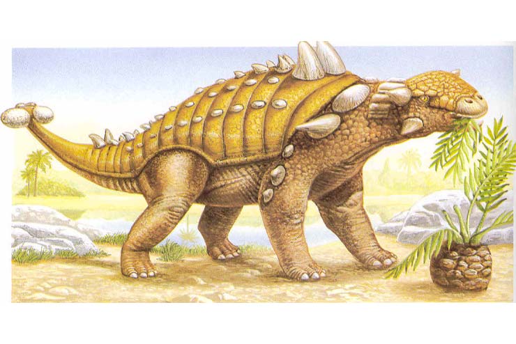 I nodosauri, parenti stretti degli anchilosauri, possedevano oltre che una spessa corazza anche numerose file di noduli e spinge ossee che erano ricoperti da una guaina di cheratina e che si estendevano su tutto il corpo di questi dinosauri.